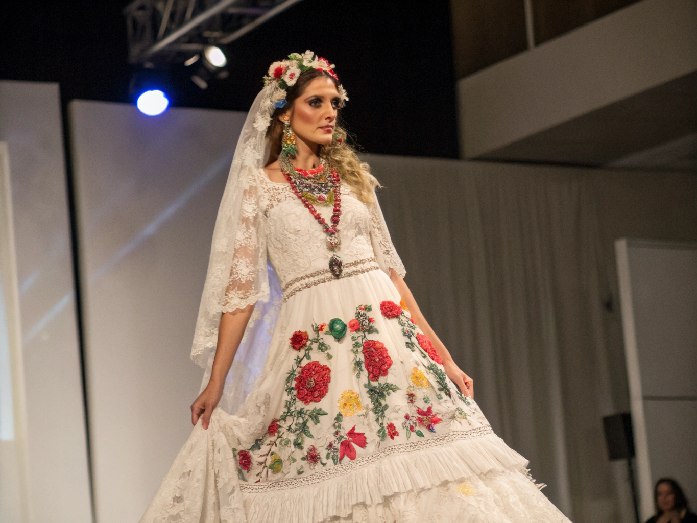 The Bodice – Typically heavily boned, corseted, and embellished with crystals, sequins, or even LED lights. The structure alone can weigh several kilograms. Think of it as a sparkling armor of femininity.
