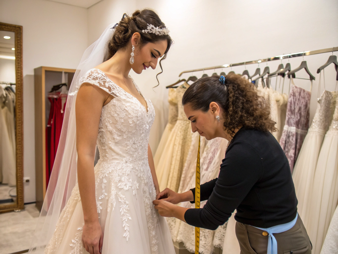 Most brides require 2-3 fittings. Simple alterations may need only one, while complex changes could require four or more. Each additional fitting beyond the standard package typically costs $25-$50.
