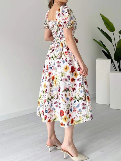 • Clara – Vacation Casual Puff Sleeve Floral Midi Dress